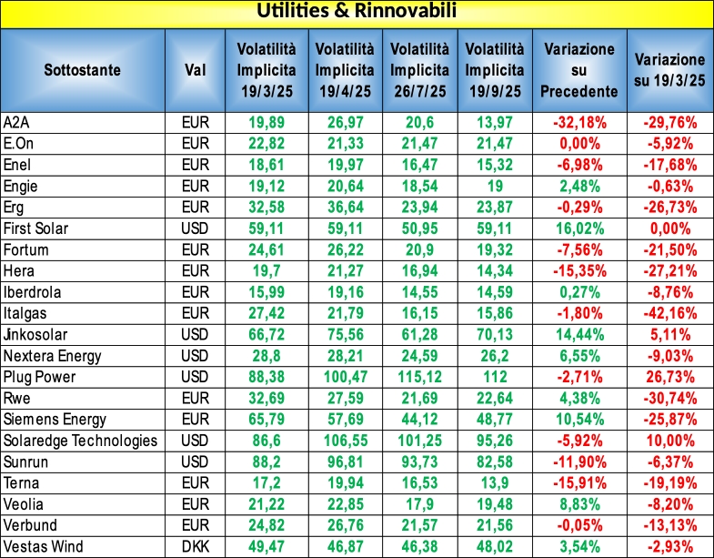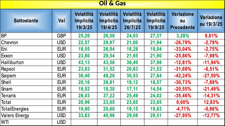 Selezione dei sottostanti Energy, Oil, Gas, Utilities e Volatilità Implicita