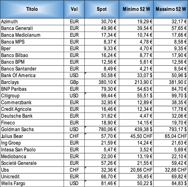 Pertanto un prodotto correlato su titoli bancari già noti, che è vero ultimamente in calo, ma, come affermano molti analisti, trattasi di un ‘sano e salutare’ ritracciamento in un trend comunque ancora rialzista, visti i dati delle ultime semestrali pubblicati recentemente e le varie guidance.