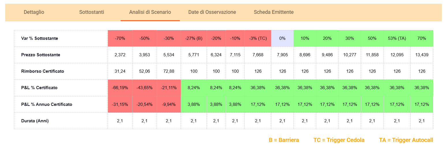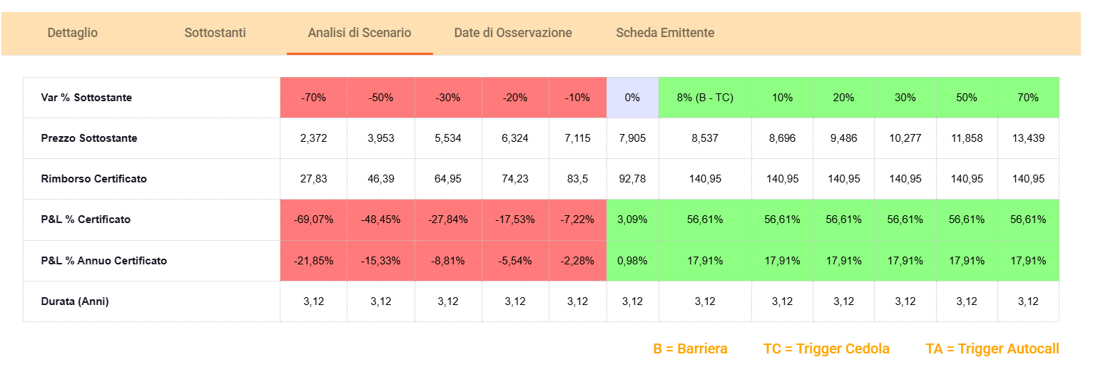 A fronte di questo, se siamo disposti ad accettare il rischio implicito di questo certificato (elevato in assoluto), il potenziale è devastante: