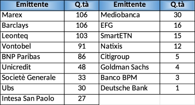 La conferma che questo sia un settore fortemente battuto dagli emittenti lo dà il numero di certificati attualmente acquistabili sul mercato con i sottostanti che abbiamo esaminato: 3.132.