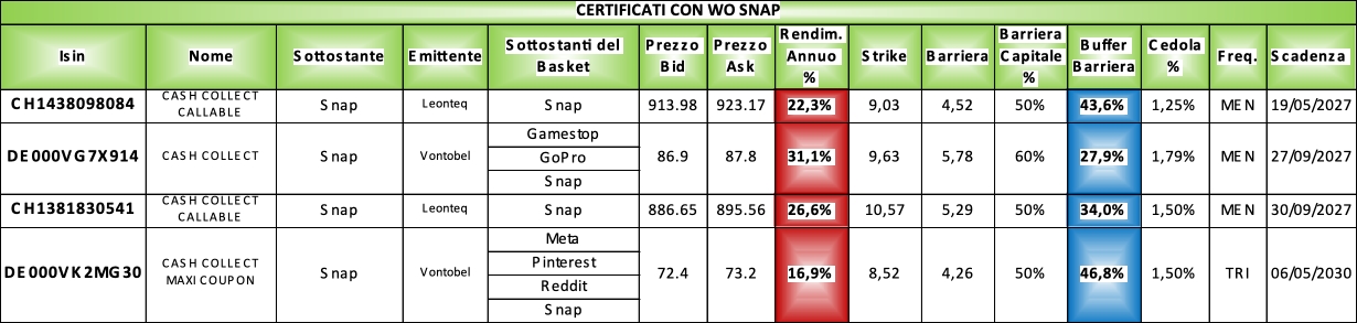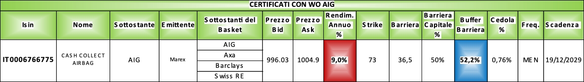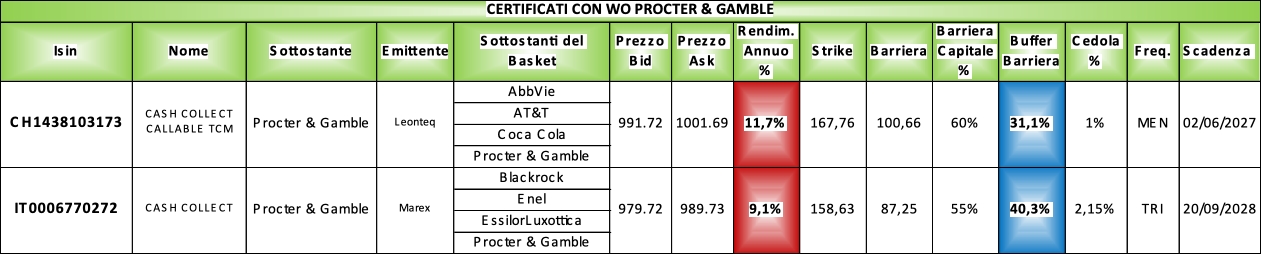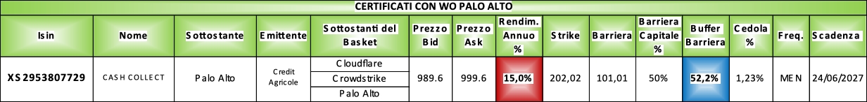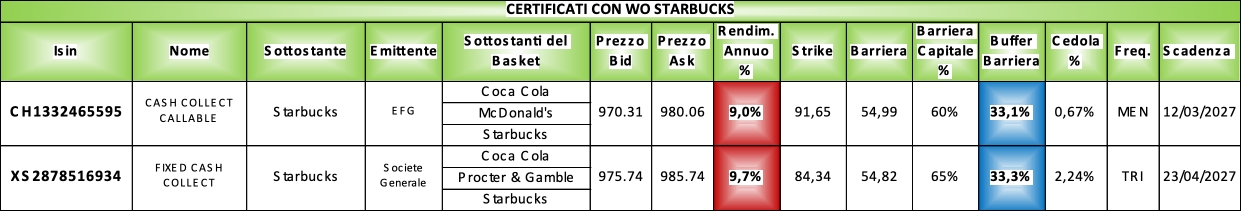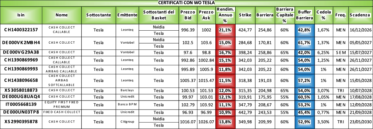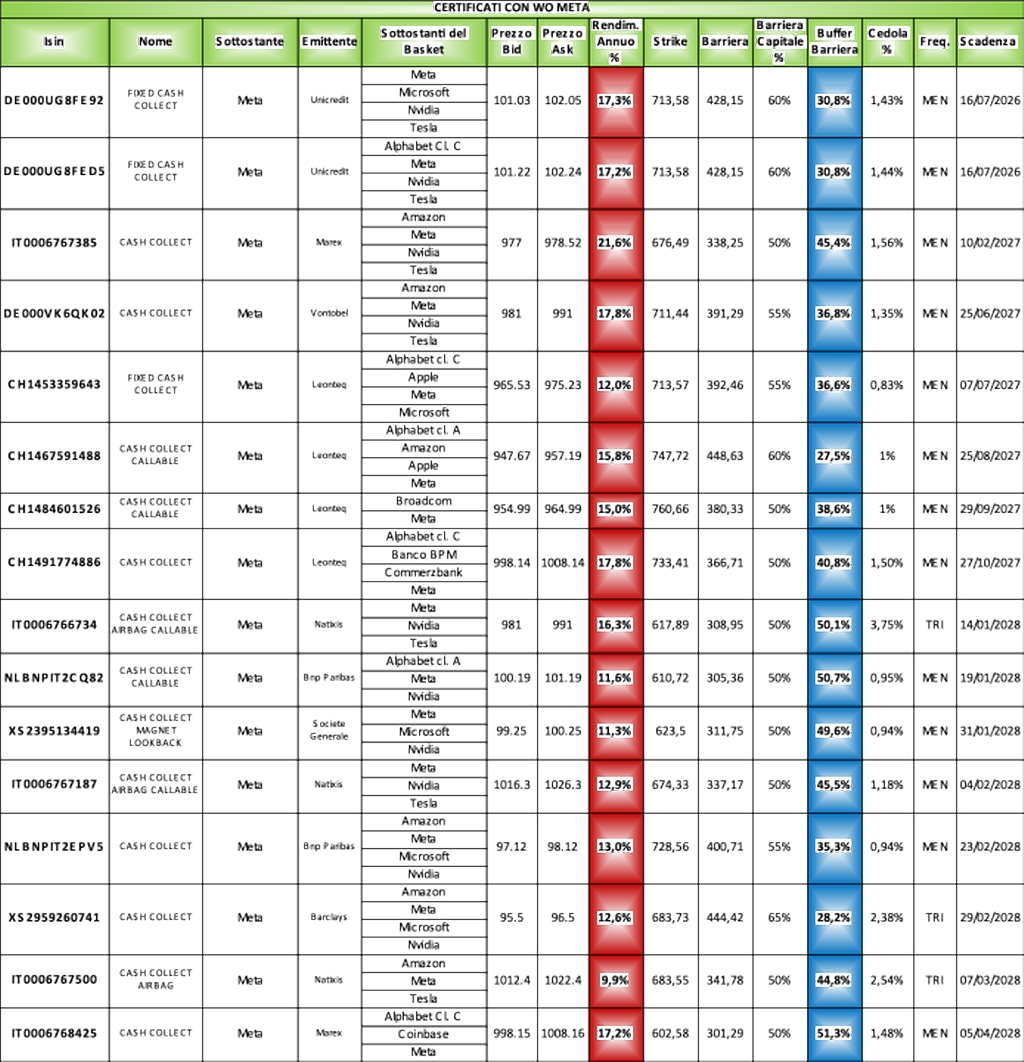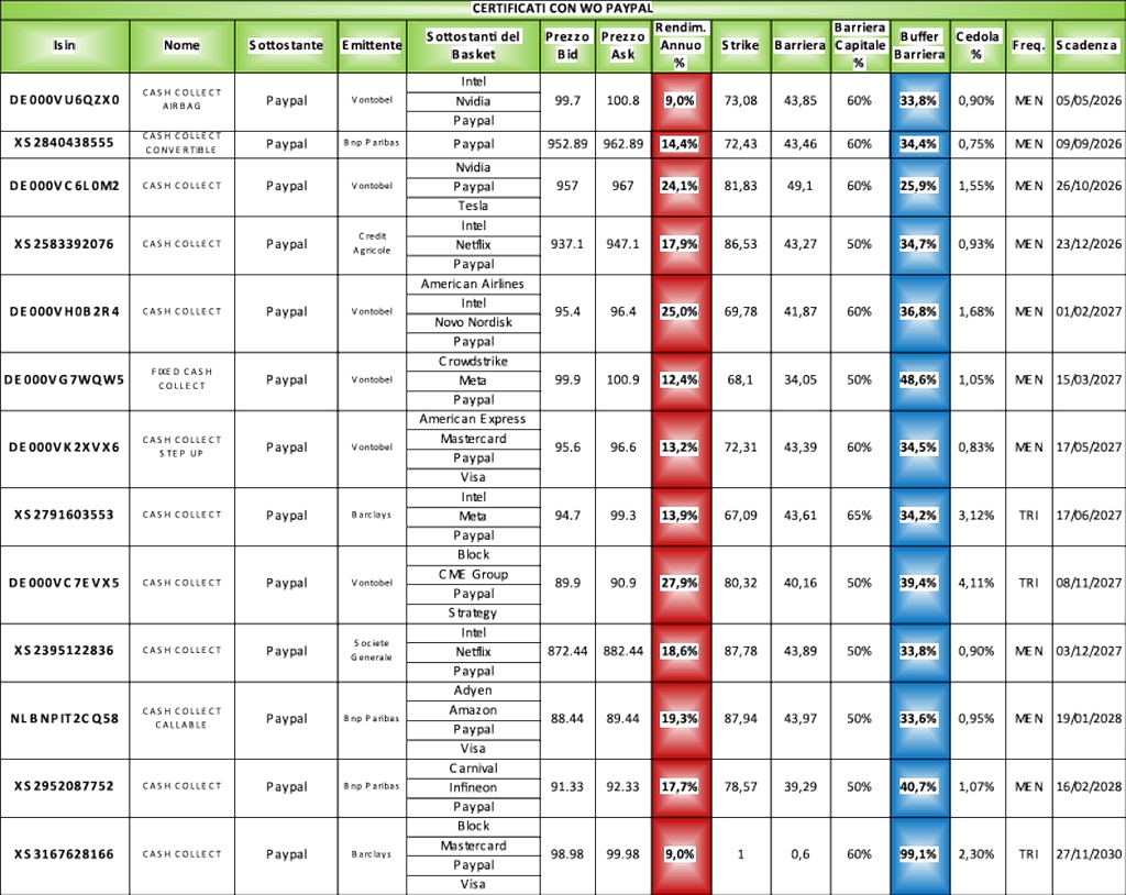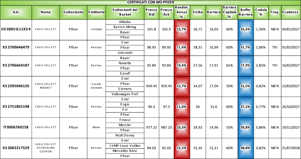 Per chiarezza nella selezione non troverete certificati reverse o in dollari e con buffer capitale/cedola minore del 25% e con payoff annuo minore del 9%.
