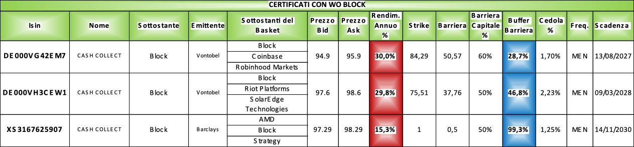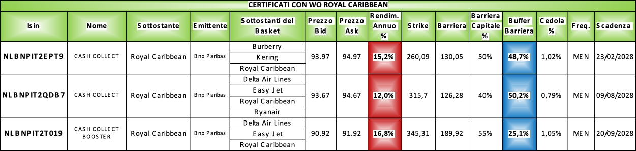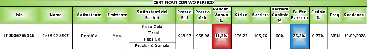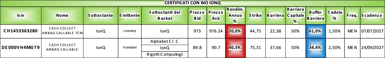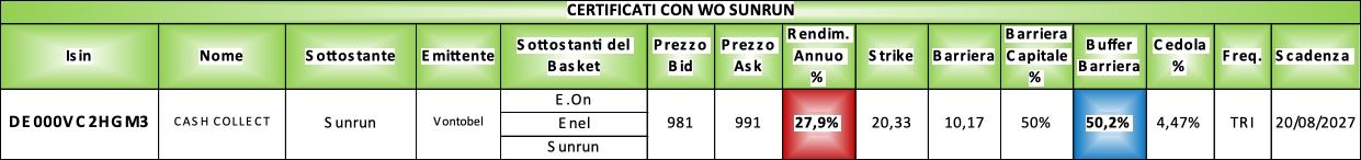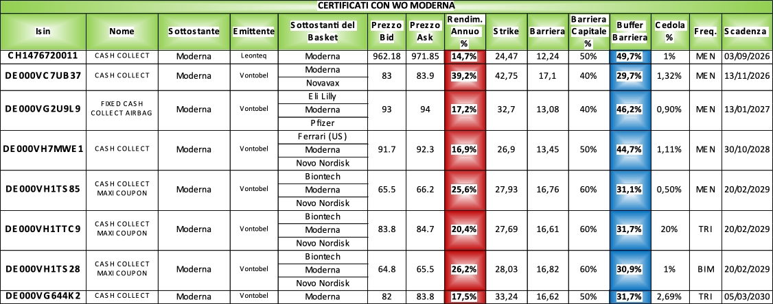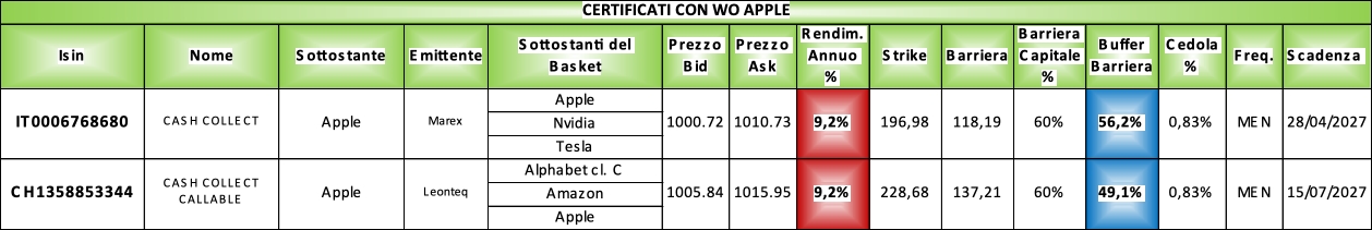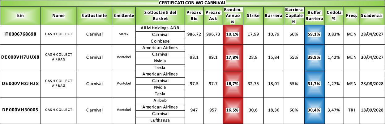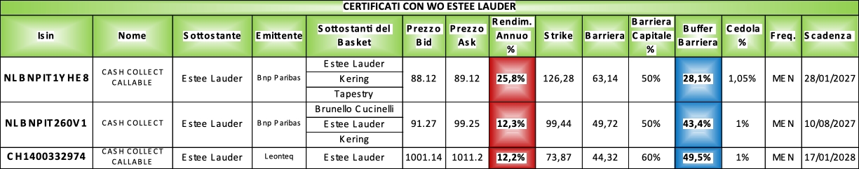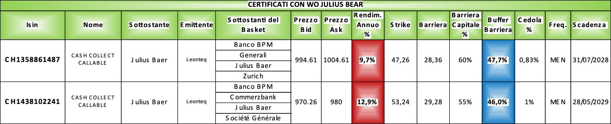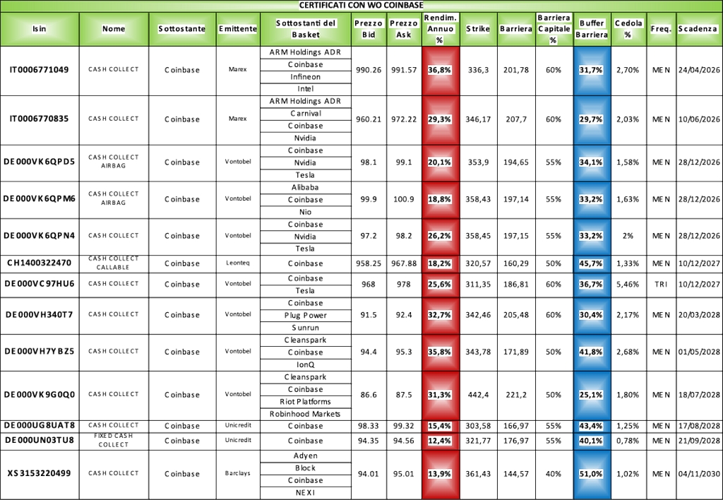 Per chiarezza nella selezione non troverete certificati reverse o in dollari e con buffer capitale/cedola minore del 25% e con payoff annuo minore del 9%.