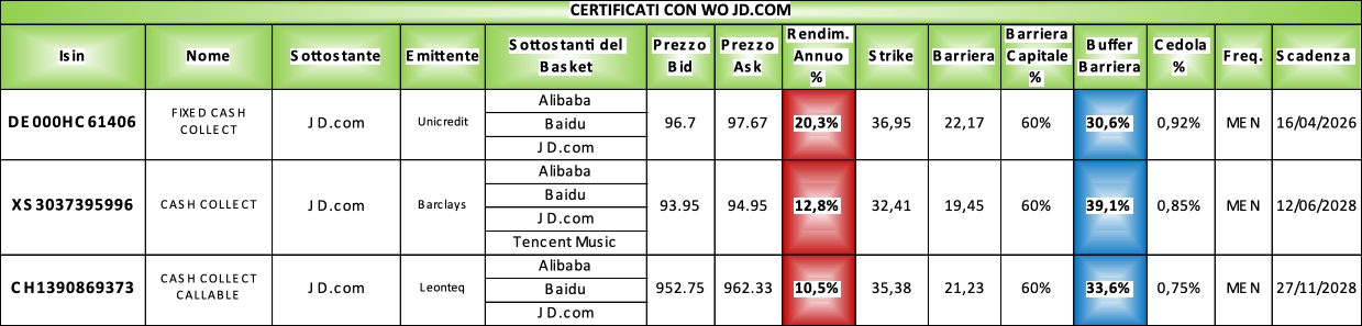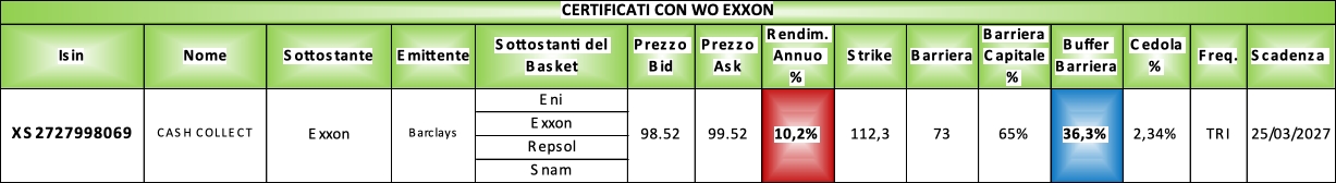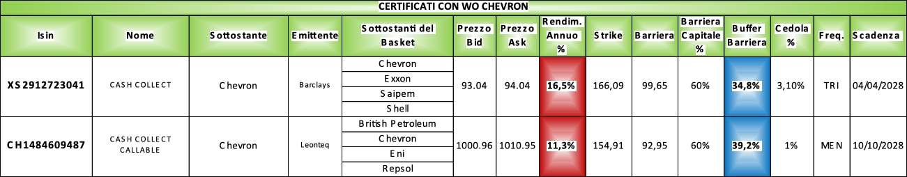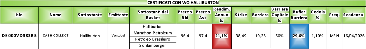 Ricordo infine che, sebbene siano tutti sottostanti quotati in dollari, questi certificati sono quotati in euro e non sono sottoposti al rischio del cambio.