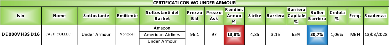 Non possono mancare, in un portafoglio bilanciato, certificati con sottostanti di oltre oceano, sebbene, secondo me, in maniera ridotta e “ben pensata”.